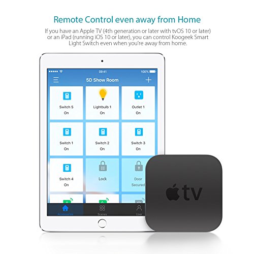 - 自宅以外の場所からでも、[リモコン]との間にApple TV(第4世代以降)、Koogeekスマートライトスイッチを制御できから離れているときでもHomeではありません。