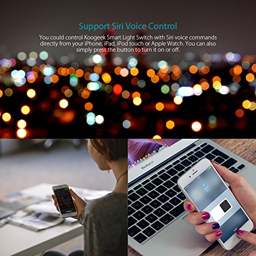 - Apple HomeKit準拠する[ Siriの音声コントロールサポート]テクノロジーを採用しています。スマートライトKoogeek Koogeek Home APPのスイッチやSiriの音声コマンドの制御をお使いのiPhone , iPad , iPod touchから直接、またはApple Watch。ハブは不要。