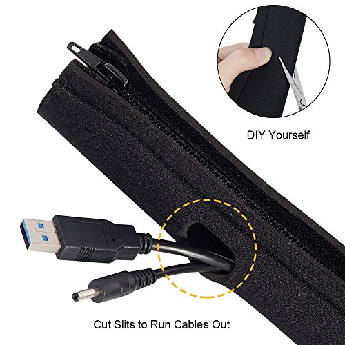 Kootek Five 20 Inch Inch Zipper Cable Management Neoprene Cord Cover Sleeve Wire Hider Concealer Organizer Protector System for Desk TV PC Computer Home Theater [並行輸入品]