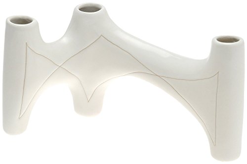 Ikebana, the Japanese discipline of flower arranging, has a history over 600 years old. The term Ikebana is a combination of the words living and flower, and at its most basic it is a way to showcase the natural beauty of flowers through emphasizing shape, line, and form. Although Ikebana is a creative expression, different Schools of teaching have different rules. Even within Schools, many different styles of arrangements are often practiced. Some classical styles of arrangement can carry very particular tenets for practitioners to follow, while modern styles of arrangement may be more relaxed, allowing arrangements to be more free-formed. Choosing an appropriate Vase for a flower arrangement is an important part of showcasing the flower's natural beauty. This modern Ikebana Vase has three short columns, and a matte white finish with etched geometric accent.
