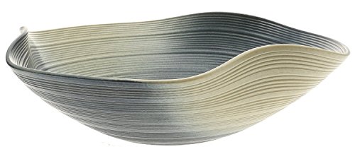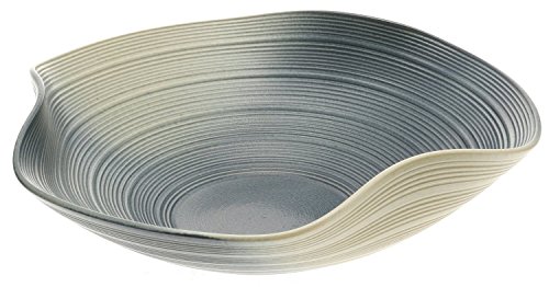 Ikebana, the Japanese discipline of flower arranging, has a history over 600 years old. The term Ikebana is a combination of the words living and flower, and at its most basic it is a way to showcase the natural beauty of flowers through emphasizing shape, line, and form. Although Ikebana is a creative expression, different Schools of teaching have different rules. Even within Schools, many different styles of arrangements are often practiced. Some classical styles of arrangement can carry very particular tenets for practitioners to follow, while modern styles of arrangement may be more relaxed, allowing arrangements to be more free-formed. Choosing an appropriate Vase for a flower arrangement is an important part of showcasing the flower's natural beauty. This classic Ikebana Vase has wavy sides with concentric circles and a Blue and light green finish.