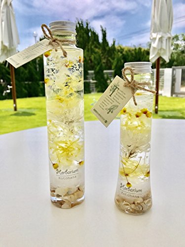 ハーバリウム 保存された植物標本という意味です。 ドライフラワーやプリザーブドフラワーをボトルに入れて、専用のオイルに浸すことで、みずみずしい状態で1年以上インテリアとして楽しむ事ができます。 オイルについて 引火点は約260度ととても高いので、通常のオイル(サラダ油やオリーブオイル)とは違って燃えにくくなっています。 天然素材を使用していますので、写真の画像の作品とは素材の大きさや長さが若干異なります。 素材は同じものを使用し、雰囲気の変わらぬ様に制作いしますのでご了承をお願いいたします。 ご注意 容器はガラスなので、落としたり倒したりすると割れる可能性があります。 置く場所によっては劣化を早める場合があります。