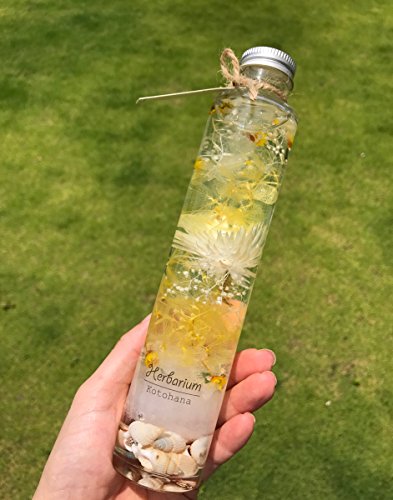 - ハーバリウム 保存された植物標本という意味です。 ドライフラワーやプリザーブドフラワーをボトルに入れて、専用のオイルに浸すことで、みずみずしい状態で1年以上インテリアとして楽しむ事ができます。 オイルについて 引火点は約260度ととても高いので、通常のオイル(サラダ油やオリーブオイル)とは違って燃えにくくなっています。 天然素材を使用していますので、写真の画像の作品とは素材の大きさや長さが若干異なります。 素材は同じものを使用し、雰囲気の変わらぬ様に制作いしますのでご了承をお願いいたします。 ご注意 容器はガラスなので、落としたり倒したりすると割れる可能性があります。 置く場所によっては劣化を早める場合があります。