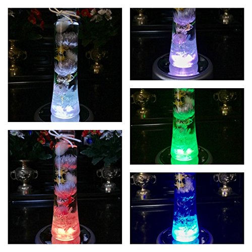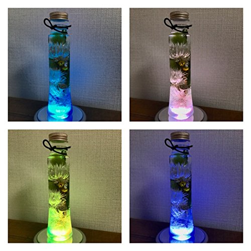【★ハーバリウムの仏花★】作りました! 3種類のカラー中の『ブルー』になります。 1本置いても充分な存在感。 【★仏花 プリザーブドフラワー 仏壇用★】 手入れが楽なので、ペット仏壇用ブリザードフラワーとしても最適。 ガラス瓶に入っていて汚れにくく オイルとLED照明により、美しさが増します。 【★ライトを当てた状態★】2枚目の写真は『White』に4色のライトを当てた写真です。 白、青、緑、赤と色が変わります。 1色のみ、2色のみ、4色と切替ができるスイッチとOnとoffのスイッチが付いています。 【★ハーバリウムとは★】 保存された植物標本という意味です。 オイルについて 引火点は約260度ととても高いので、通常のオイル(サラダ油やオリーブオイル)とは違って燃えにくくなっています。 【★造花ではありません★】生花を加工してあり、ドライフラワーやプリザーブドフラワーをボトルに入れて、専用のオイルに浸すことで、みずみずしい状態で1年以上使用することが出来ます。 【★生花ではありません★】その為花粉やアレルギーの心配なし 【★単4電池3本★】で動きます。コードレスで使用出来ます。 (※電池は付いていません。) 【★名入れをご希望の方★】ご一緒にご購入下さい。(1本1500円)ガラスにサンドブラスト加工致します。 【★ご注意ください★】 花材は全て自然のものを使用していて同じ形状のものはないので、写真の花材の大きさや並びが実際にお届けする作品とは多少異なります。 なるべく雰囲気や色合いを近づけて制作しますのでご了承ください。