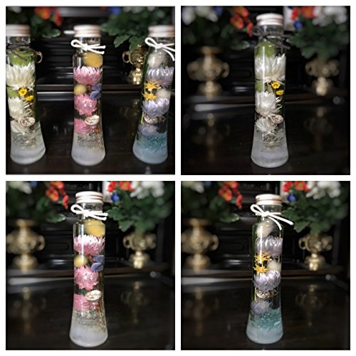 【★ハーバリウムの仏花★】作りました! 3種類のカラー中の『ブルー』になります。 1本置いても充分な存在感。 【★名入れをご希望の方★】ご一緒にご購入下さい。(1本1500円)ガラスにサンドブラスト加工致します。 【★仏花 プリザーブドフラワー 仏壇用★】 手入れが楽なので、ペット仏壇用ブリザードフラワーとしても最適。 ガラス瓶に入っていて汚れにくく オイルとLED照明により、美しさが増します。 【★ハーバリウムとは★】 保存された植物標本という意味です。 オイルについて 引火点は約260度ととても高いので、通常のオイル(サラダ油やオリーブオイル)とは違って燃えにくくなっています。 【★造花ではありません★】生花を加工してあり、ドライフラワーやプリザーブドフラワーをボトルに入れて、専用のオイルに浸すことで、みずみずしい状態で1年以上使用することが出来ます。 【★生花ではありません★】その為花粉やアレルギーの心配なし 【★ご注意ください★】 花材は全て自然のものを使用していて同じ形状のものはないので、写真の花材の大きさや並びが実際にお届けする作品とは多少異なります。 なるべく雰囲気や色合いを近づけて制作しますのでご了承ください。 容器はガラスなので、落としたり倒したりすると割れる可能性があります。 置く場所によっては劣化を早める場合があります。