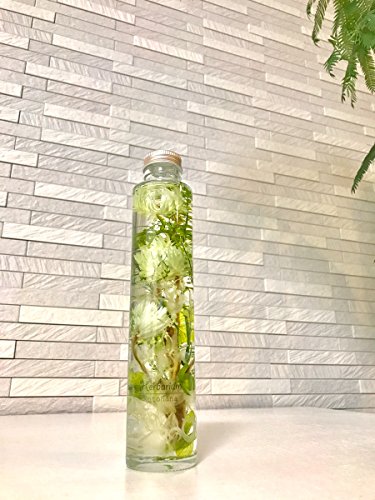 - ★ハーバリウム★ 保存された植物標本という意味です。 ドライフラワーやプリザーブドフラワーをボトルに入れて、専用のオイルに浸すことで、みずみずしい状態で1年以上インテリアとして楽しむ事ができます。 ★オイルについて★ 引火点は約260度ととても高いので、通常のオイル(サラダ油やオリーブオイル)とは違って燃えにくくなっています。 天然素材を使用していますので、写真の画像の作品とは素材の大きさや長さが若干異なります。 素材は同じものを使用し、雰囲気の変わらぬ様に制作いしますのでご了承をお願いいたします。 ★ご注意★ 容器はガラスなので、落としたり倒したりすると割れる可能性があります。 置く場所によっては劣化を早める場合があります。