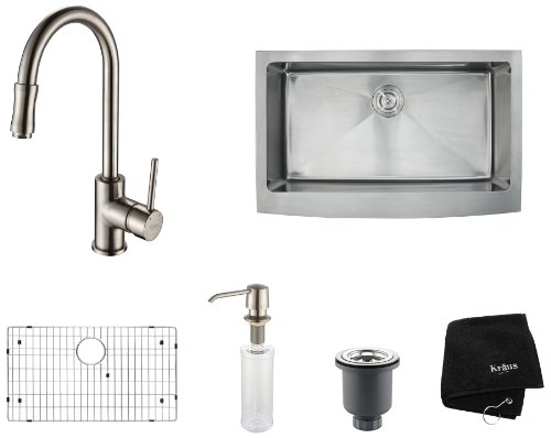 - Kraus KHF200-33-KPF1622-KSD30SN 33 inch Farmhouse Single Bowl Stainless Steel Kitchen Sink with Satin Nickel Kitchen Faucet and Soap Dispenser