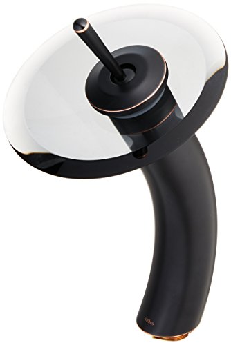 Kraus KGW-1700-PU-10ORB-BLCL Single Lever Vessel Glass Waterfall Bathroom Faucet Oil Rubbed Bronze with Black Clear Glass Disk and Pop Up Drain by Kraus