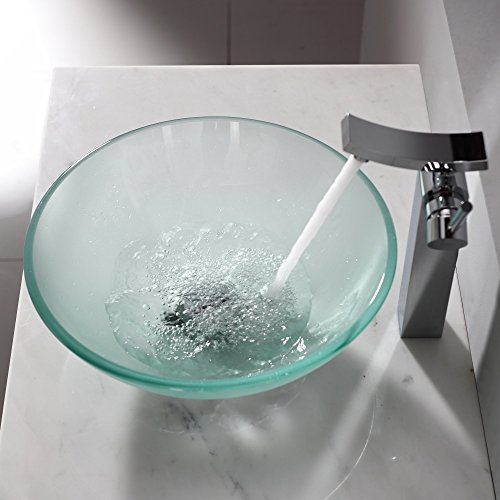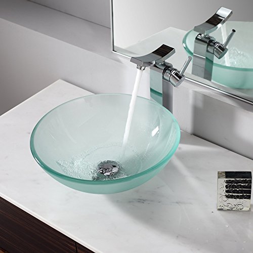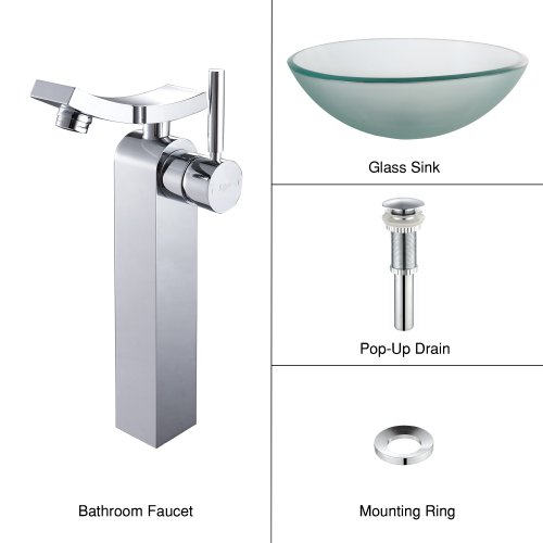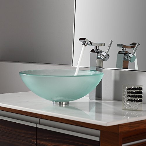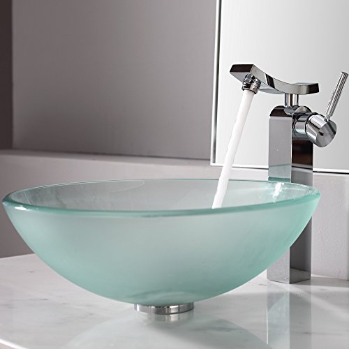 - Kraus C-GV-101FR-12mm-14300CH Frosted Glass Vessel Sink and Unicus Faucet Chrome