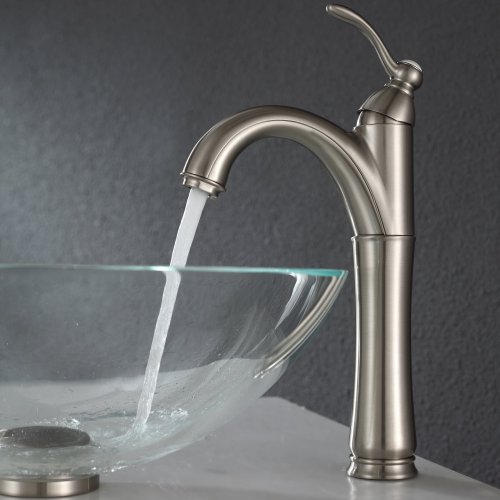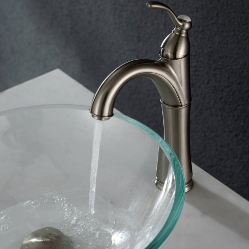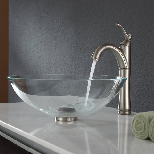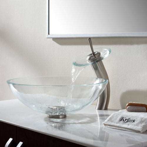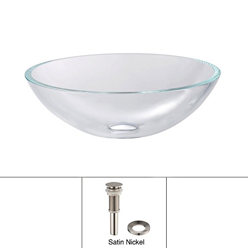 Kraus GV-100-SN Crystal Clear Glass Vessel Bathroom Sink with PU-MR Satin Nickel by Kraus
