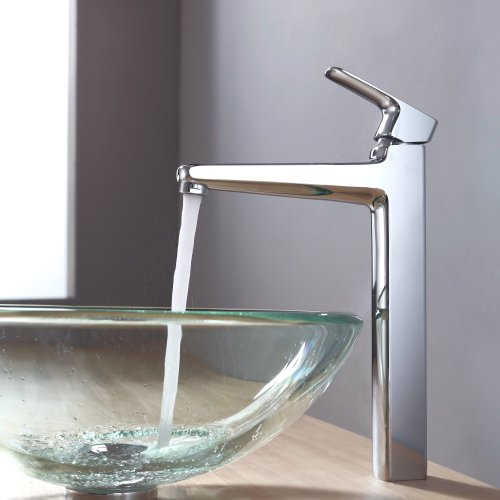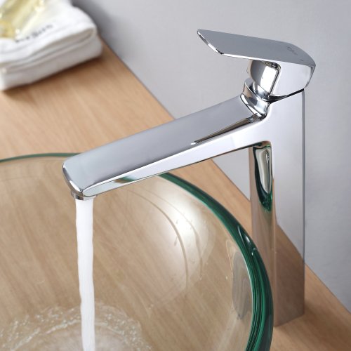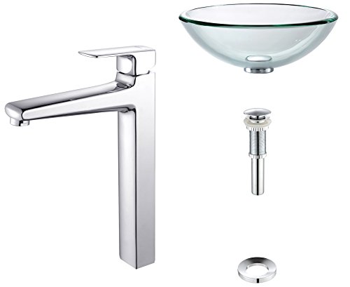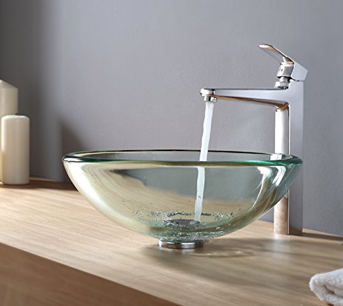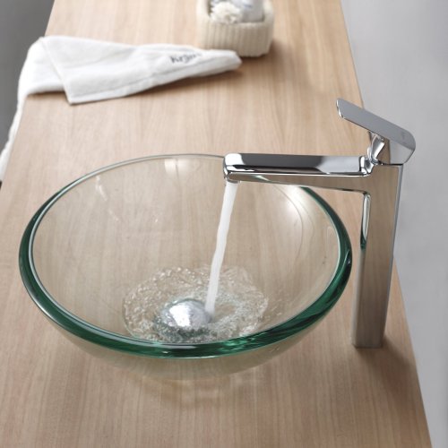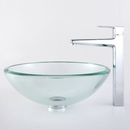 - Kraus C-GV-101-19mm-15500CH Clear 19mm thick Glass Vessel Sink and Virtus Faucet Chrome
