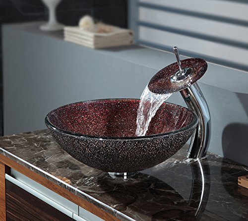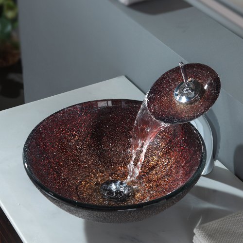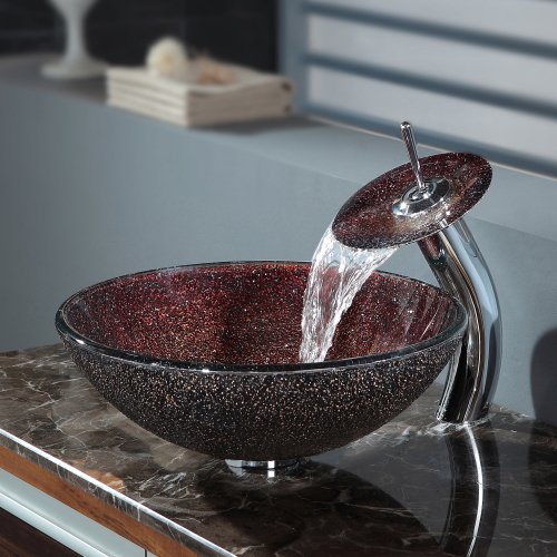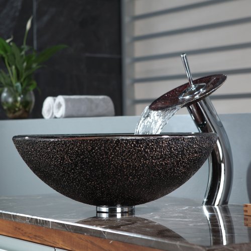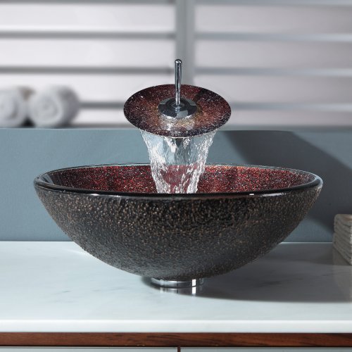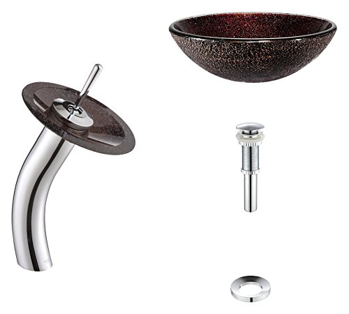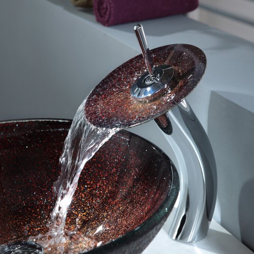 - Kraus C-GV-570-12mm-10CH Callisto Glass Vessel Sink and Waterfall Faucet Chrome