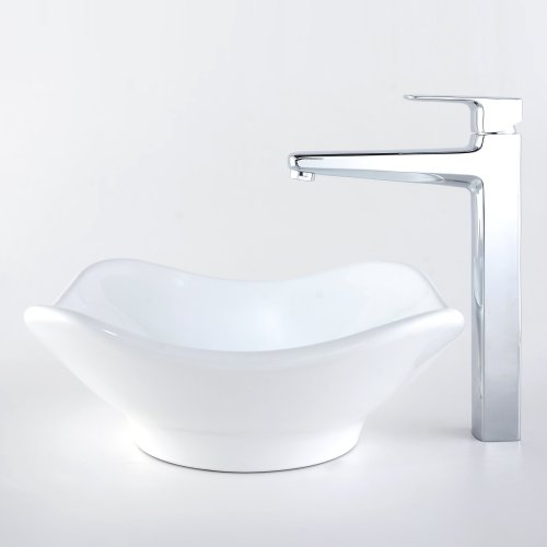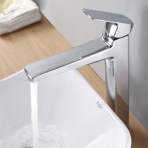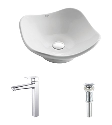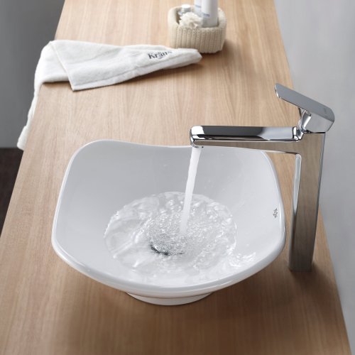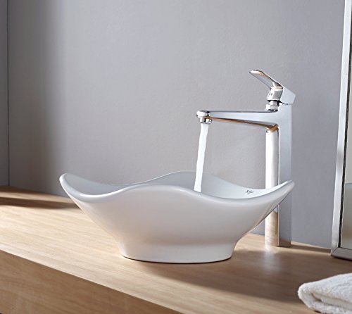 - Kraus C-KCV-135-15500CH White Tulip Ceramic Sink and Virtus Faucet Chrome