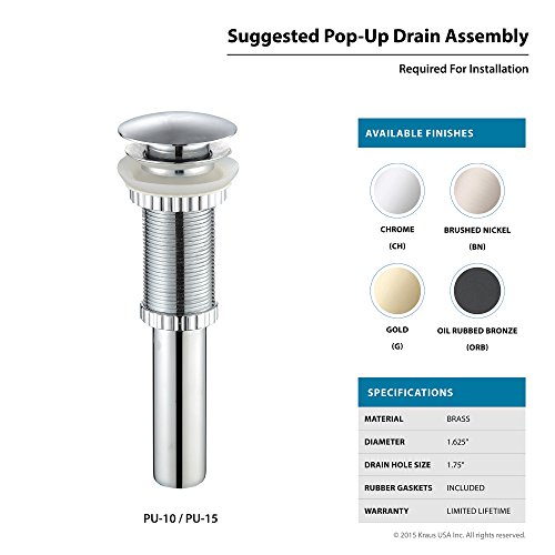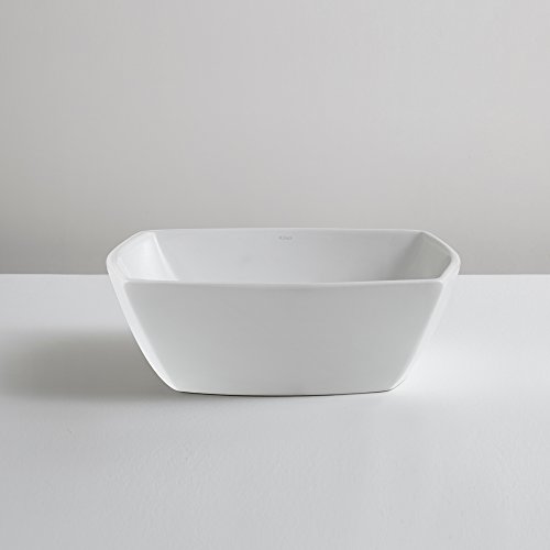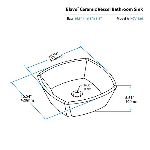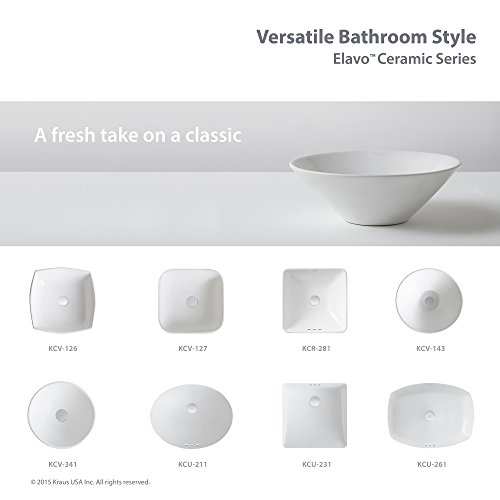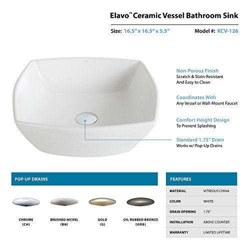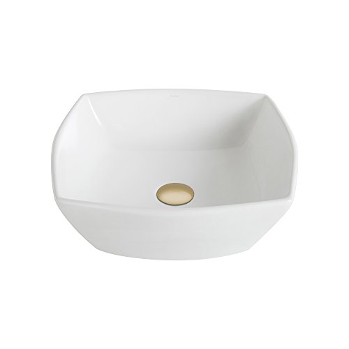 Kraus KCV-126-G Modern Elavo Ceramic Flared Square Vessel Bathroom Sink with Pop Up Drain, Gold/White by Kraus