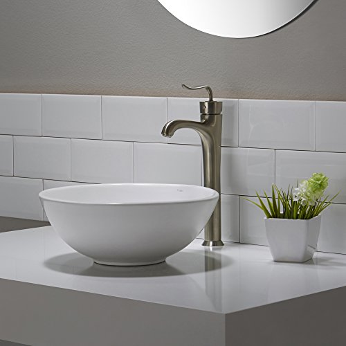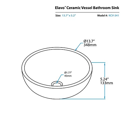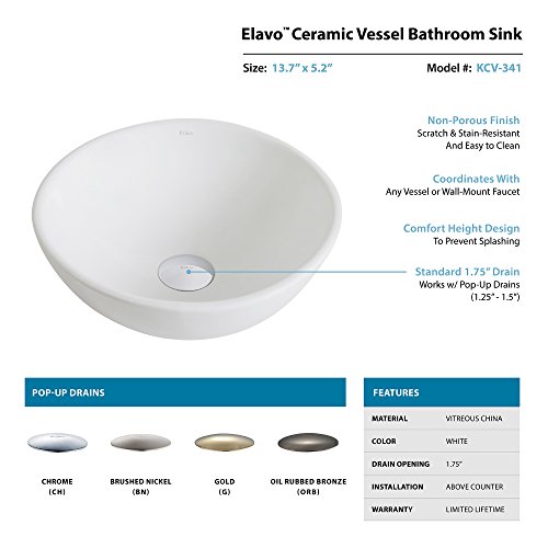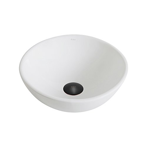Kraus KCV-341-ORB Modern Elavo Ceramic Small Round Vessel Bathroom Sink with Pop Up Drain, Oil Rubbed Bronze/White by Kraus