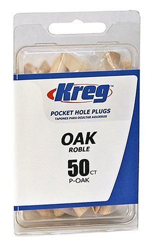 Product Description For those times when pocket holes won't be hidden on the backside of your project or you want to highlight them decoratively, use pocket hole plugs. Plugs are offered in 7 solid wood species, and 5 plastic cap colors for use on laminated surfaces. 50 per package. Amazon.com Kreg Oak Plugs for Pockets smoothly covers up pocket holes with oak dowels that securely join wood surfaces. The plugs fit perfectly into pocket holes and require minimal sanding to match pocket angles. The plugs are sealed in their packages to prevent warping from moisture accumulation. This pack includes 50 plugs. See all Product Description