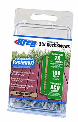The Kreg 2-5/8 Deck screws are designed to work with the Kreg Deck Jig System on 2X decking materials. These screws can also be used as a general fastener on thicker materials.