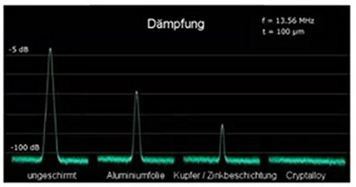 クレジットカードの磁気データ読み取り(スキミング)防止などに使用される高機能RFIDブロッキング高周波シールドシートです。また幅広い周波数帯域(低周波電磁波20KHzから、高周波電磁波4GHzまで)の電界シールドシートです。色々な医療機器や電子機器からの電磁波ノイズカットに最適です。たとえば、NFC(Near Field Communication:13.56MHzを使用)の周波数帯域もカバーしていますので、かざしてつかう非接触ICカードにおいて、電波による個体識別をブロックする試験に利用することが可能です( https://www.youtube.com/watch?v=4kz8iSJWaCw )。電磁波カットエプロンにも使用できます。ドイツ国防大学 Dr.パウリが電磁波試験証明を発行。ドイツ第三者機関のTUVがRFID電磁波試験合格認定。エコロガジャパンが幅100cmの本商品を長さ50cm単位で切り売りいたします。 MIL-PRF-131K , REACH準拠, RoHS(2002/95/EC )