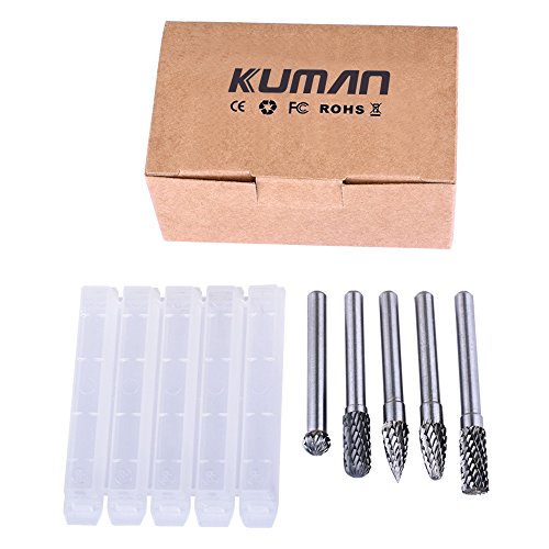 Kuman 5本セット 超硬バー ロータリーバー タングステンバー ダイヤモンド(ダブル)カット ドリル カッター 6*8mm 高速度 工具 切削 研磨用 金型加工 機械加工 芸術と工芸彫刻など KLC01
