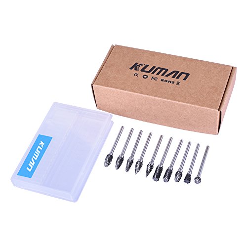 Kuman 10本セット 超硬バー タングステンバー 3mm軸 刃幅6mm ロータリーバー ダイヤモンド(ダブル)カット ドリル カッター 金属加工用 ポート加工用 金物 切削 研磨 樹脂切削用 KLC02