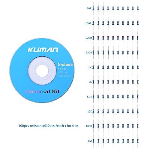 Update version than 37 sensors modules: add 100 X Resistors (10 each / 10, 100, 200, 330, 1K, 2K, 5K, 10K, 100K, 1m ohm) and one tutorilas CD at free
