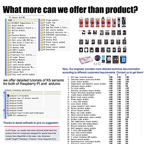We are professional factory on making all electronics components based on Arduino and Raspberry Pi. And we also have processional engineer team to offer you tutorials which you can start from beginning. We have all documents( including code) For all kits from Kuman,Detailed tutorials including project introduction and source code CAN BE PROVIDED FOR FREE,contact us BY Email to get documents.