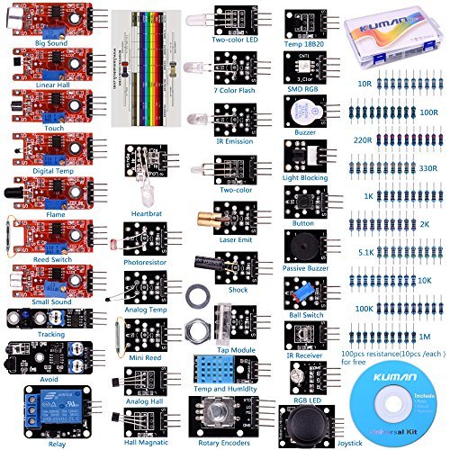 For Arduino Raspberry pi Sensor kit, Kuman 37 in 1 Robot Projects Starter Kits with Tutorials for Arduino Uno RPi 3 2 Model B B+ K5 [並行輸入品]
