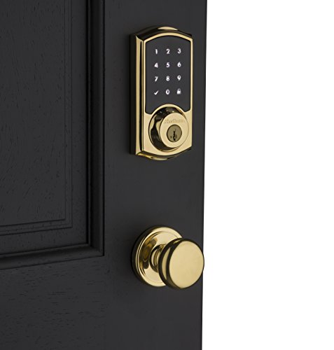 Includes 20 minute fire rated round corner latch. Step up to designer styles and superior security with Kwikset Signature Series products. Smart Code touchpad electronic deadbolt is the only one-touch locking motorized deadbolt. With your personalized code, you can enter your home with the convenience of keyless entry and the back-lit keypad provides increased visibility. Smart Code is easy to install, program and use and operates on 4 AA batteries (not included). It also features Smart Key re-key technology as the back-up keyway. This single cylinder deadbolt can be locked or unlocked by using the keypad or key from the outside as well as the turn button from the inside. The Polished Brass finish adds to the traditional look and feel of the product and makes a classic statement.
