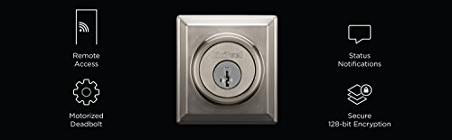 Motor-driven deadbolt latch allows for true remote locking and unlocking;Z-Wave enables the lock to wirelessly communicate with other devices in home;Installs in minutes with just a screw Driver - no hard wiring needed;ANSI/BHMA grade 2 certified; full 128-bit encryption security;Requires 4 AA batteries, purchased separately