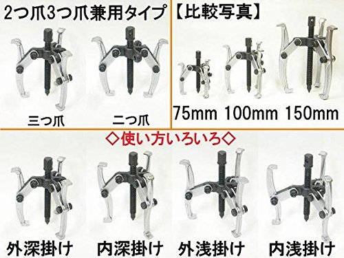 プロ仕様強化型 3個組セット ■三つ爪二つ爪兼用ギヤプーラー 75mm(3インチ)、 100mm(4インチ)、 150mm(6インチ) 三本爪二本爪兼用プーラー