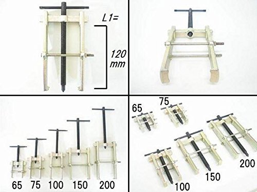 ■ 固定式ベアリングプーラー 200ミリ ※ プーラーのサイズ表記は規格サイズを表記したものです。対象物直径の適合を示すものではありません。 ※ 固定式プーラーとは、弊社の他のプーラー類との区別を付けるための呼称です。 ■ 鋳造製(爪・ヨーク) 【鋳造(ちゅうぞう)プーラーとは】 爪は鋳造製で、このままの使用はもちろん、用途に応じて先端の加工がしやすい金属です。 プーラーを使用する作業となりますと、様々な状況が考えられ、先端や形状も一概に同じ形のものが使用できるとは限りません。 そのような場合、曲げや削りなどの加工がしやすい鋳造製の爪をもったプーラーが役立ちます。 また、シャフト部分は、丈夫な合金鋼製なので安心です。 価格が安いのも、一度限りの作業などを考えると大きな利点です。 ■ 付属のボルトで爪を締められるので、 ベアリングなどを固定することができます。 補助的な作業するためのボルトです。 強く締め付ける必要はありません。 □□□ 規格サイズ □□□ (数値は約)、(固定用ボルト含まず) 固定式プーラー 200mm 爪の奥行き(画像3枚目のL1。どの深さまで届くかの長さです。) およそ120mm 爪の開口幅 (対応するベアリングの直径) およそ86mm 『シャフト長・185mm』 『シャフト可動範囲(ねじ切り範囲)・148mm』 『爪の全長・158mm』 『シャフトの直径・12mm』 □□□□□□□□□□□□ ■ ホビー類や、小さなモーターやエンジンにも使用でき、 汎用型の二つ爪プーラーとして、とても便利な商品です。 ■ ベアリングプーラー、ギヤプーラー、プーリープーラーなどの用途としてご使用できます。 ■ 形状は、アーマチュアベアリングプーラーに似ており、代替品としても使用可能です。 ■ 弊社では、 『強化型プロ仕様のアーマチュアベアリングプーラー』 『鍛造製のアーマチュアベアリングプーラー』 なども取り扱いがございますので、ぜひ参考の上ご検討ください。 ■ 使用対象または適合につきましては、お答えすることは不可能ですので、ご了承ください。 ※梱包に使用している箱は、社内にある空き箱を適宜利用させていただいております。箱の標記内容は、商品と異なりますのでご了承ください。