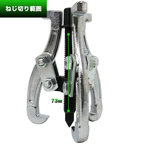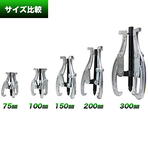 ■ 三本爪 プーラー 75mm (3インチ)■ 鍛造製(鋳造製に比べて強度や粘りが強く、丈夫に出来ています) ■ もっともスタンダードな形状の三つ爪(三本爪)プーラーです。■ サイズ(必ずご確認の上、ご購入ください。)■《 規格 3インチ 75mm》■『使用範囲の目安』深さ(爪の掛かる奥行き)【40mm 】外掛け 直径【40mm 〜 85mm】に対応します。【シャフト長 : 104mm】【シャフト可動範囲(ねじ切り範囲) : 73mm】【爪の全長 : 107mm】※ プーラーのサイズ表記は規格サイズを表記したものです。対象物直径の適合を示すものではありません。■ プーラーは無理のかからないサイズをご利用ください。■ 対象又は、車種の適合につきましては、お答えすることは不可能ですので、ご了承ください。