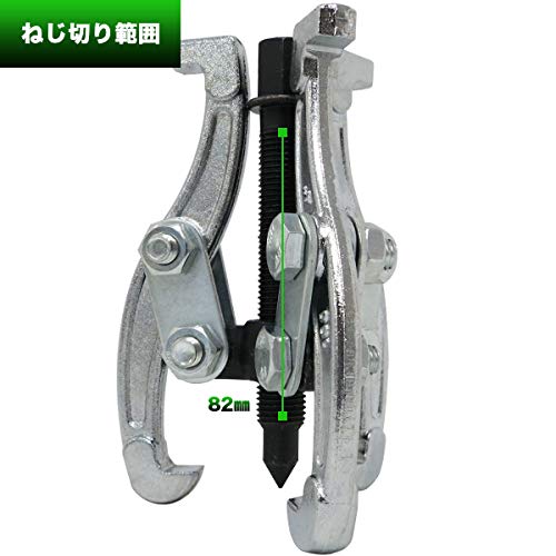 ■ 三本爪 プーラー 100mm (4インチ)■ 鍛造製(鋳造製に比べて強度や粘りが強く、丈夫に出来ています) ■ もっともスタンダードな形状の三つ爪(三本爪)プーラーです。■ サイズ(必ずご確認の上、ご購入ください。)■《 規格 4インチ 100mm》■『使用範囲の目安』深さ(爪の掛かる奥行き)【55mm】 外掛け 直径【50mm 〜 100mm】に対応します。【シャフト長 : 120mm】【シャフト可動範囲(ねじ切り範囲) : 82mm】【爪の全長 : 125mm】※ プーラーのサイズ表記は規格サイズを表記したものです。対象物直径の適合を示すものではありません。■ プーラーは無理のかからないサイズをご利用ください。■ 対象又は、車種の適合につきましては、お答えすることは不可能ですので、ご了承ください。
