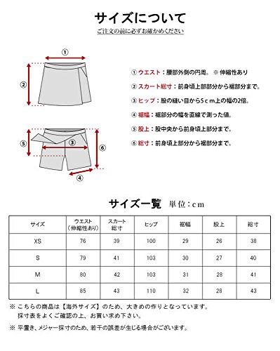 - ●快適な履き心地の秘密 ●ストレッチ素材 生地にはスパンデックスを使用。 ストレッチがきいているのでどんな動きでも、楽に動ける。 ウェストも後ろはゴムなので、締め付け感なし。 ●巻きスカート風キュロット 一見するとスカートのように見えて、実はキュロット。 可愛さと動きやすさを両立。 パンツと違っておしりが隠れるので体型カバーにもなる。