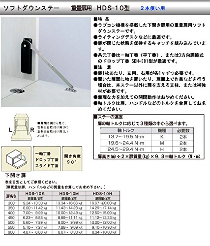 ソフトダウンステー 重量扉用 【LAMP】 スガツネ HDS-10K キャッチ付 扉1枚あたり左・右用を各1ヶ所ずつ使用。 左用/ホワイト ソフトダウン ステー