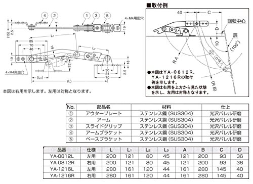 横開き用 ステー 扉全開時 自動ロックします。 [ランプ]印