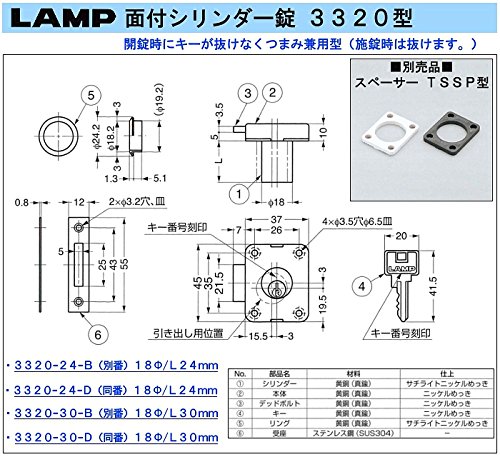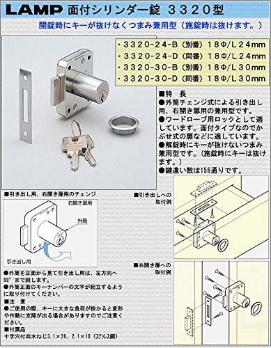 面付シリンダー錠 【18Φ/L30mm 】面付タイプ なのでかぶせ式の扉などに適してます。 つまみ兼用型。 [ランプ]印
