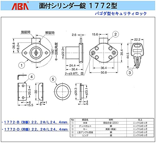 面付シリンダー錠 【22.2Φ/L24.4mm】 高い防犯性、簡単に複製が困難。 [ランプ]印