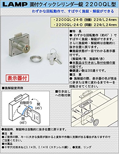 面付クイックシリンダー錠 《表示器付》 【22Φ/L24mm】 すばやく施錠・解錠ができます。 [ランプ]印