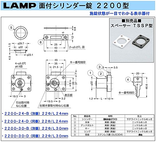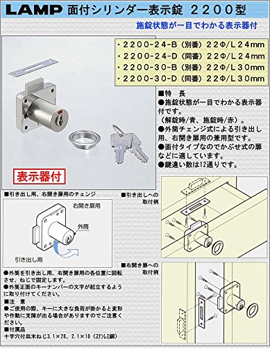 面付シリンダー錠 【22Φ/L24mm】 面付タイプ なのでかぶせ式の扉などに適しています。 《表示器付。》 [ランプ]印