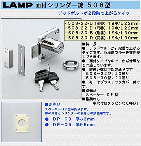 シリンダー錠 『面付』 【LAMP】 スガツネ 508-22-B 《別番》 【19Φ/L22mm】 家具用 鍵 ロック