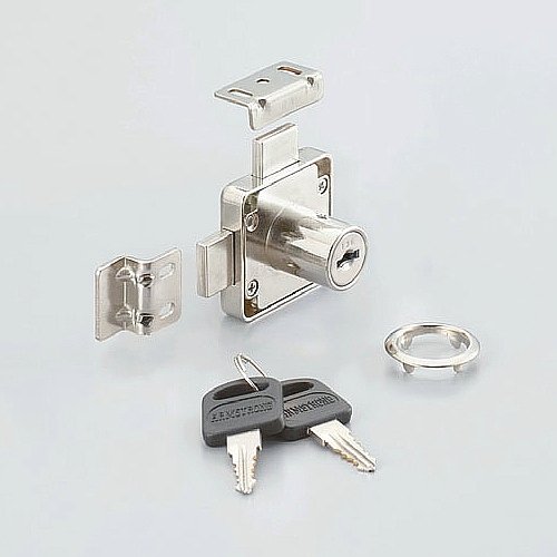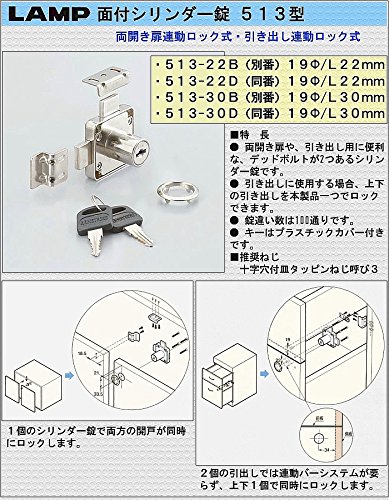 面付シリンダー錠 【19Φ/L22mm】 両開き扉連動ロック式 引き出し連動ロック式。 デッドボルトが2方向に出ます。 [ランプ]印