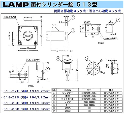2個以上お買い上げの場合、キーナンバーは違い番で揃えさせて頂きます513-22-b。