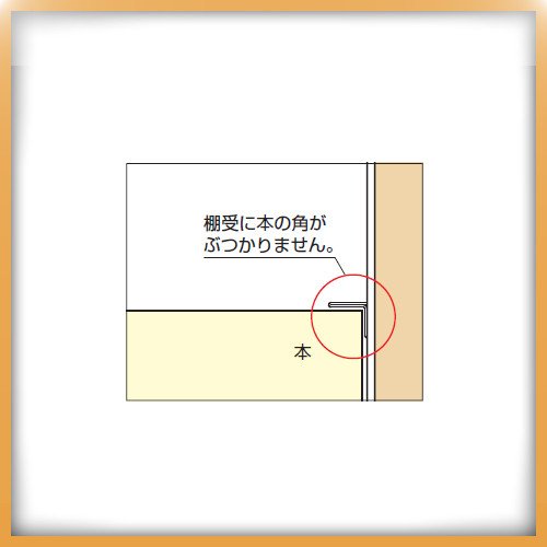 ● 薄型形状のため、下図のように収納物の邪魔にならず、本棚などの使用に最適です。