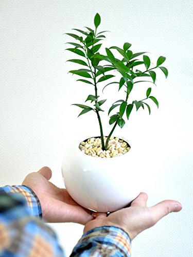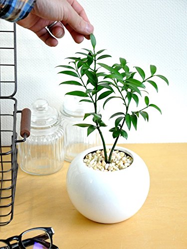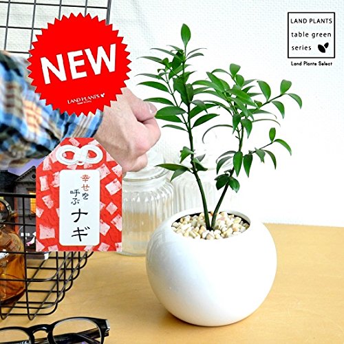 LAND PLANTS 縁結びの木 梛(ナギ) 白色丸型陶器