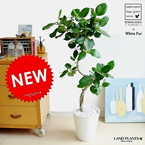 LAND PLANTS ベンガレンシス 3Dカーブ 白セラアート鉢 ベンガルゴム