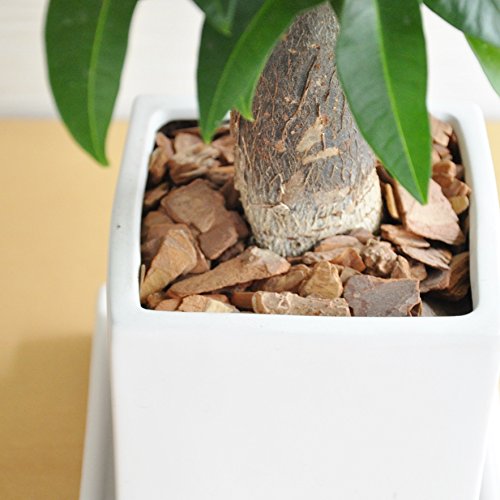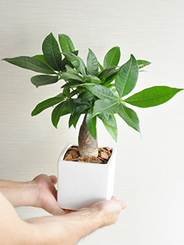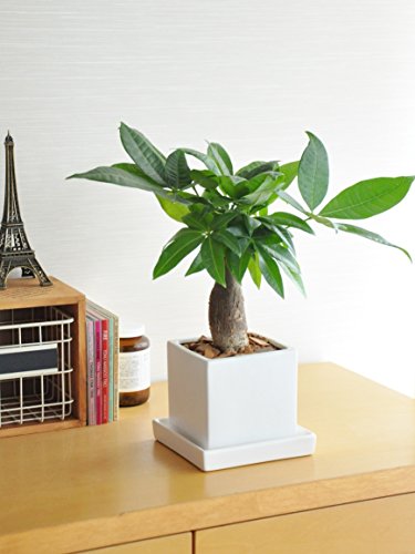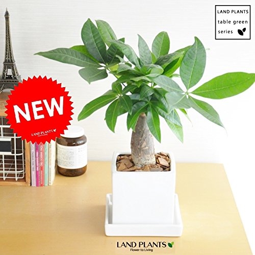 LAND PLANTS 【観葉植物】 パキラ (白色シンプルスクエア陶器)