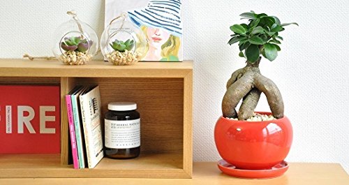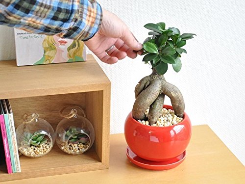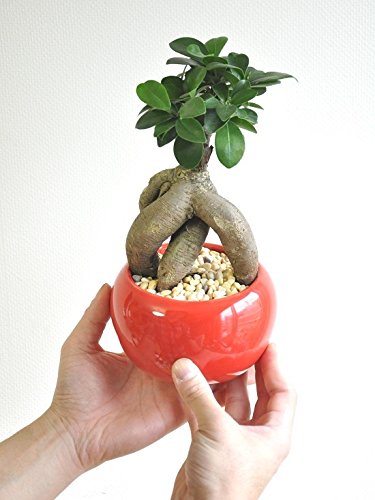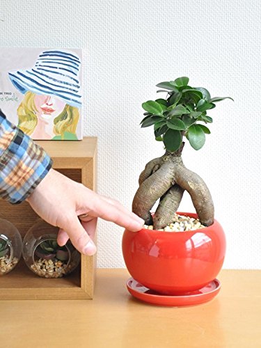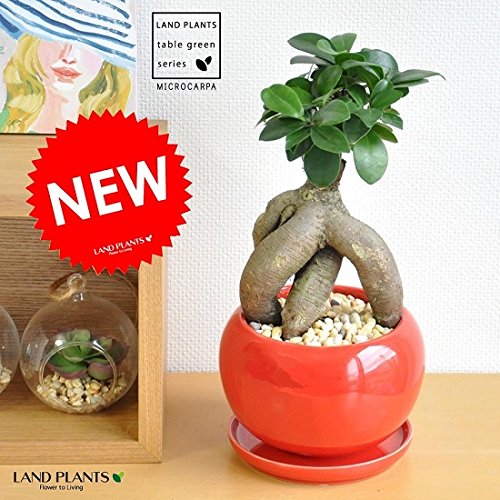 LAND PLANTS 【観葉植物】 多幸の樹 ガジュマル 幹太タイプ (赤色 大丸型陶器)