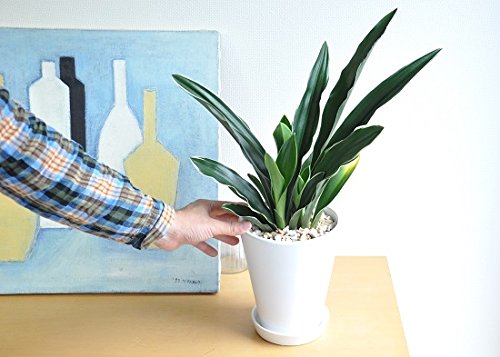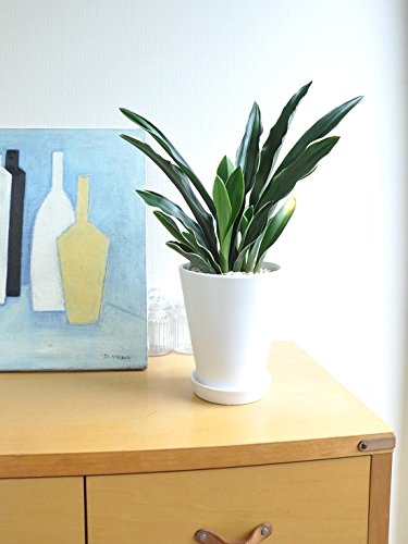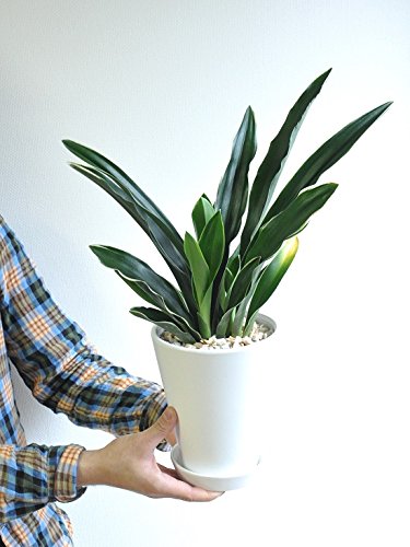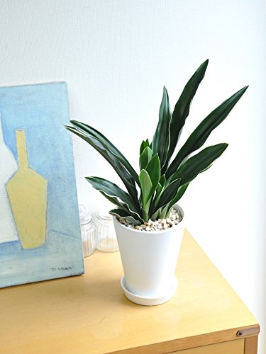 LAND PLANTS 【観葉植物】 万年青 (オモト) 都城 (白色貫入陶器鉢)