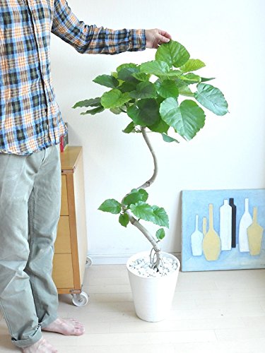 LAND PLANTS 【観葉植物】 ウンベラータ (3Dカーブ 白セラアート鉢)